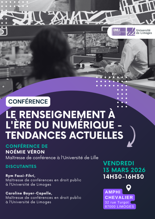 Les informations recueillies sur ce formulaire sont enregistrées dans un fichier informatisé par l’Université de Limoges afin de gérer l’évènement « Le renseignement à l’ère du numérique – tendances actuelles« . Elles sont collectées pour une durée de 1 an et destinées aux personnels en charge de l’organisation de cet évènement.
